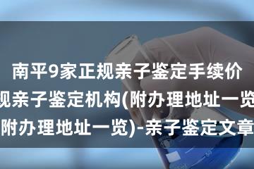 以上就是关于郴州亲子鉴定机构的详细信息。